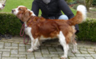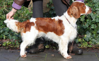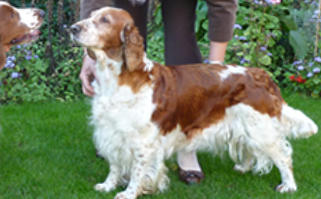 De Welsh Springer Spaniel heeft een witte zijdeachtige bevedering aan poten, borst en buik, die wapperen ook vrolijk in de wind en als ze lopen.